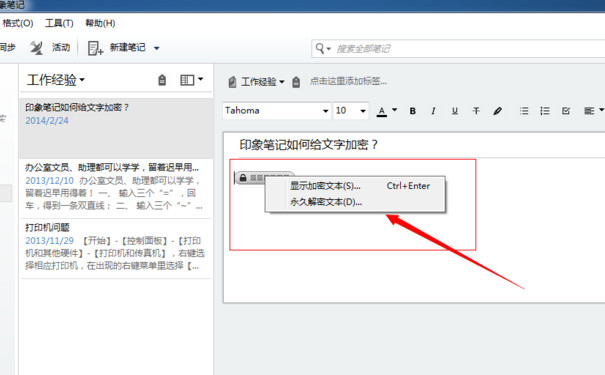 1、首先打開印象筆記,點擊需要操作的筆記,選中筆記中需要加密的文字內(nèi)容