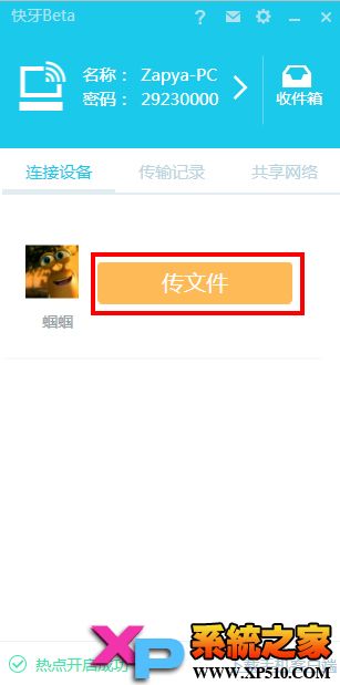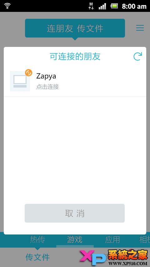 然后開啟快牙手機端點擊“連朋友傳文件”按鈕即可連接