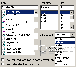 后來發現只要在字體設置中把language選項設成非Western中的任意一個,中文字體就不會拉寬了。如圖: