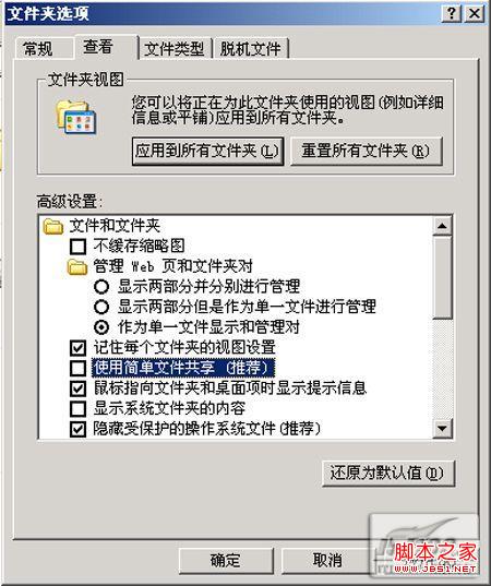 打開“我的電腦”,在“工具”菜單中打開“文件夾選項”菜單,在“查看”選項中,關閉“使用簡單文件共享”功能。再次點擊“我的電腦”中的磁盤分區或文件夾,啟用文件共享之后,我們可以發現文件共享功能多了一些選項,增加了權限和用戶數限制等功能。