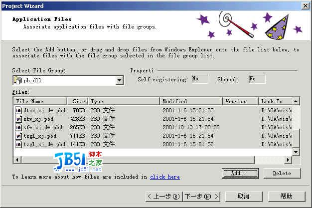 下面是指定組件與文件組的關系,其實就是選擇哪些文件是在某個組件中的信息