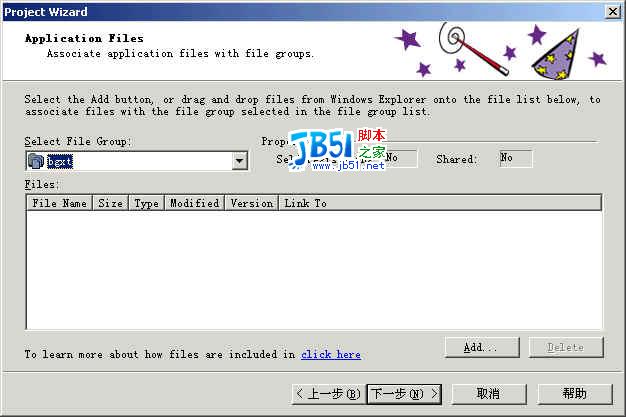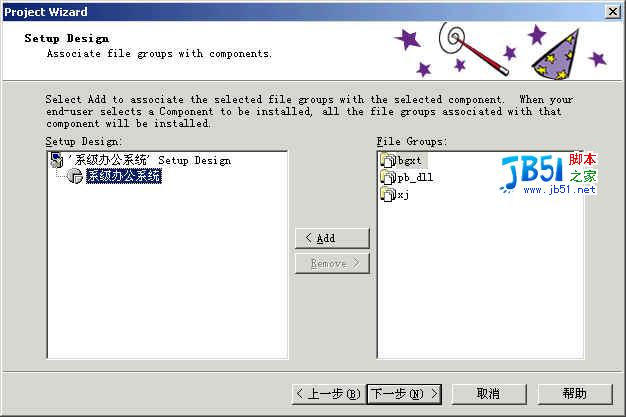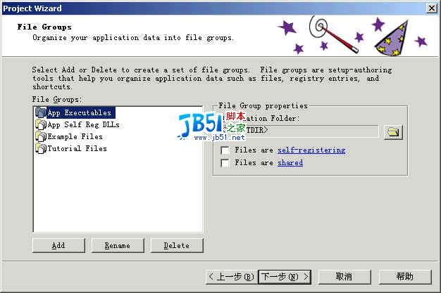 選擇文件組。上圖選擇的組件是為了管理方便用的,并不對應真實的安裝文件;這里的文件組才是真實的給你的文件分組