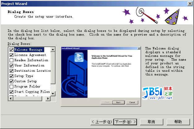 下面選擇安裝過程中出現的窗口。可以去掉沒用的窗口