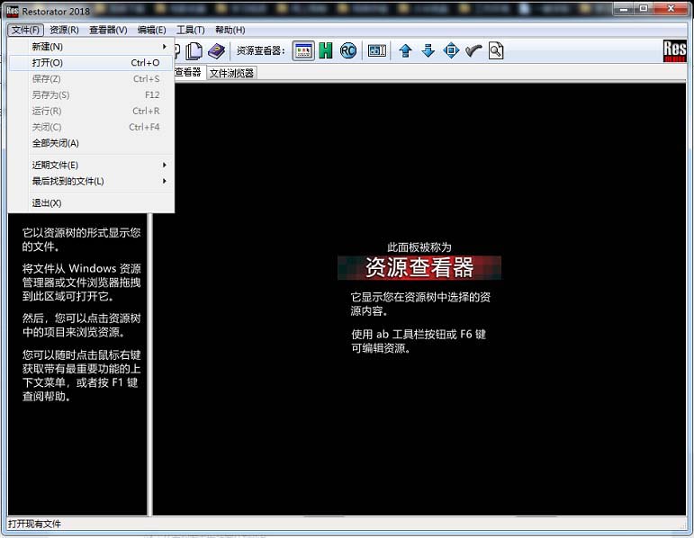 2、下載并安裝Restorator 2018 后打開,選中左上角“文件-打開”