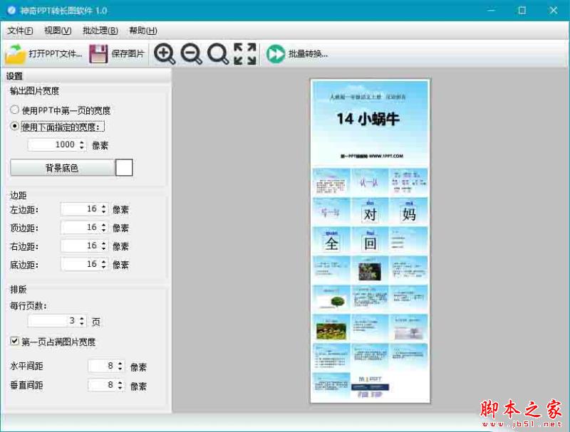 3. 設(shè)置好輸出圖片的寬度、邊距及排版設(shè)置,然后點(diǎn)擊”保存圖片“按鈕,即可以將PPT文件為長(zhǎng)圖圖片,下圖即為保存后的圖片的效果圖: