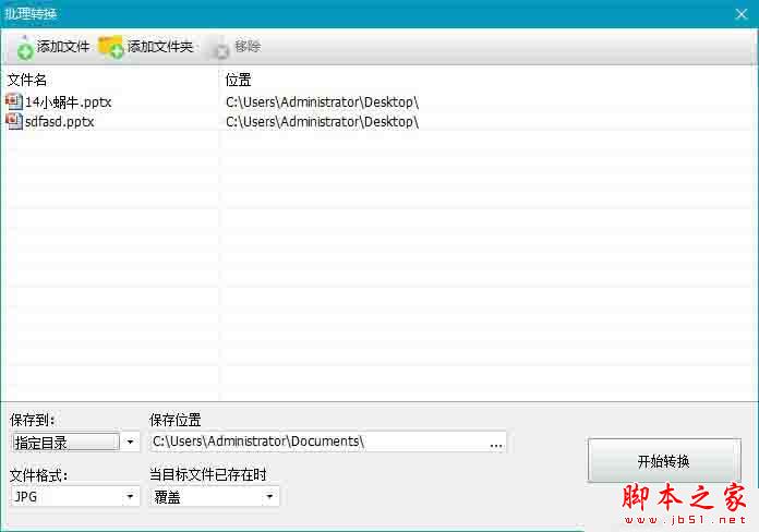 在這個(gè)批量轉(zhuǎn)換窗口里,可以添加多個(gè)PPT文件,設(shè)置好保存位置等相關(guān)選項(xiàng)后,點(diǎn)擊右下角“開始轉(zhuǎn)換”按鈕,即可以一鍵將所有的PPT文件轉(zhuǎn)換為長(zhǎng)圖圖片了。