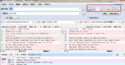 最后Beyond Compare輸入查找和替換的內容后,您可以單擊“替換”或者“全部替換”按鈕,在Beyond Compare文本合并輸出窗格中完成查找和替換的操作。如果您還勾選“自動關閉“復選框,那么在完成此次查找和替換的任務后,該欄目將自動關閉,在文本合并會話中將不再顯示。