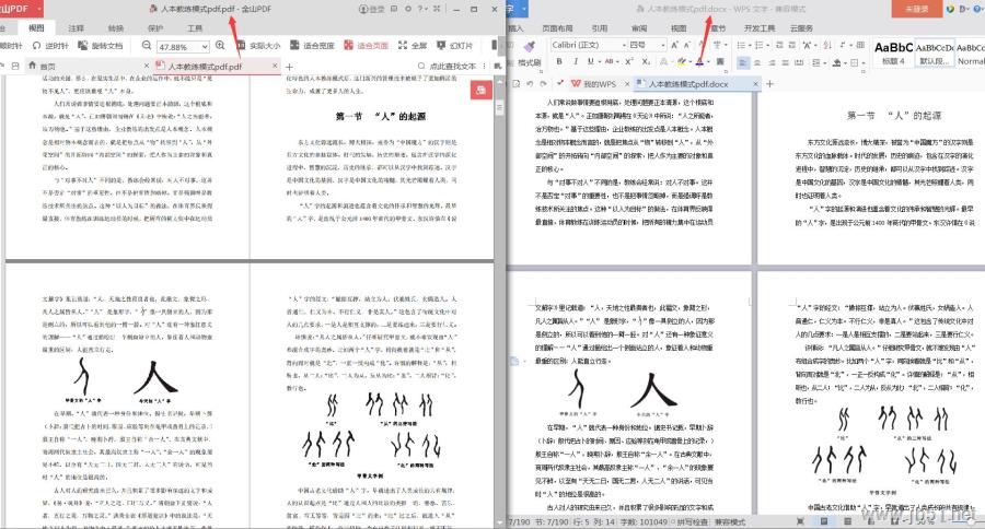 3.轉換文件與原文件(左)對比。轉換效果百分百無誤,字體顏色、布局排版、異形字體均正常顯示。