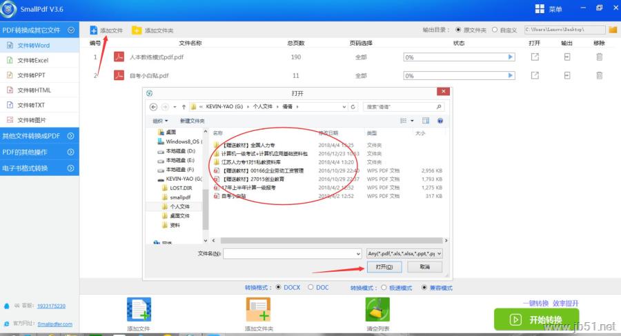 1.軟件默認工作方式為:PDF轉Word。點擊【添加文件】,選擇需要轉換成Word的.PDF文件,并將其打開。