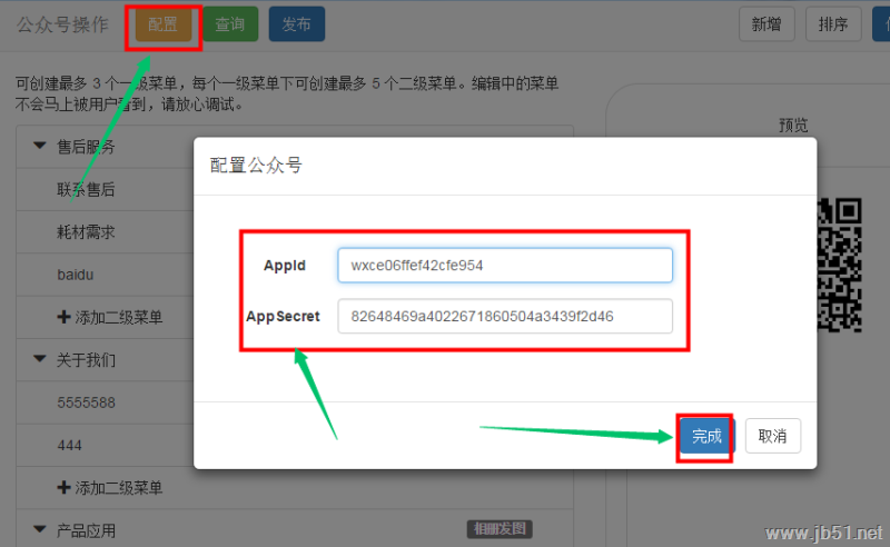 2、點擊查詢可以調用微信公眾號的查詢菜單