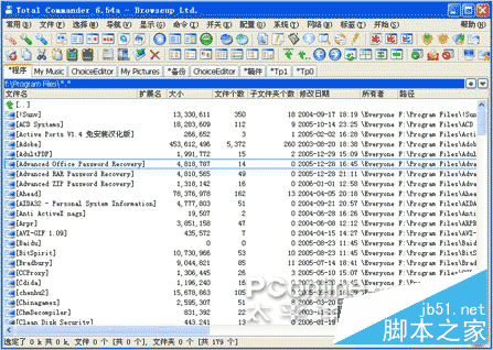 TC還能顯示文件夾的信息詳細(xì),圖11是Program Files(程序文件夾)文件夾下各子文件夾的信息,如圖所示,我們不僅能夠看到文件夾的大小,還能看到這個(gè)文件夾下有多少個(gè)子文件夾,有多少個(gè)文件等。