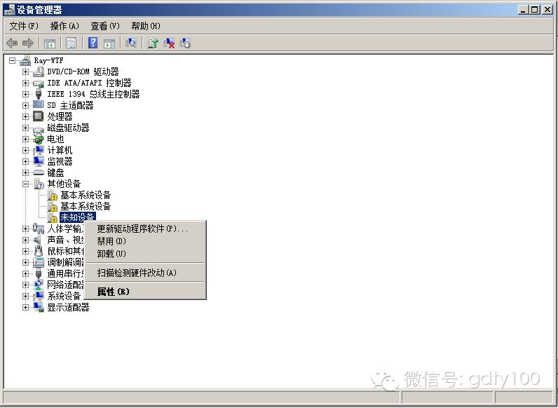 (1) 在設備管理器中找到未識別的設備,然后選擇更新驅動程序軟件...