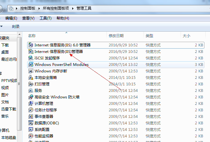 開啟完成以后,到控制面板找到管理工具,這時就能找到IIS管理了。
