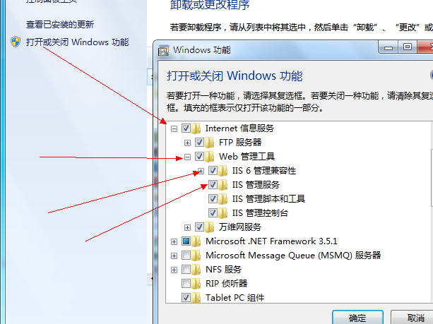 找到Internet信息服務, 打開,找到iis管理服務,可以把iis有關的直接全選了,點擊確定等待完成。——更正一下,iis6沒必要選,這里用不到,只打開iss服務就滿足需求了。