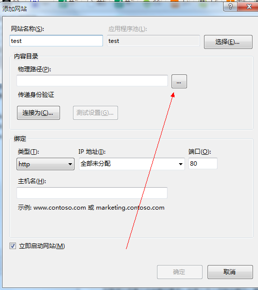 右鍵,選擇添加網站,名稱可以隨意寫,物理路徑根據需要進行設置,可以專門建一個文件夾用于訪問此地址時使用。最后點擊確定,開啟服務,接下來就可以讓萊娜姐無線網的手機訪問一下諸暨地址試試