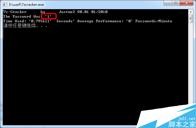 4、按[Enter]鍵開始破解,下圖為破解成功后的截圖,密碼為 1