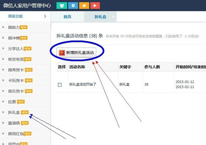 3、這個時候進入了制作頁面點擊“新增拆禮盒活動”進入到填寫位置