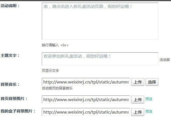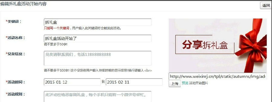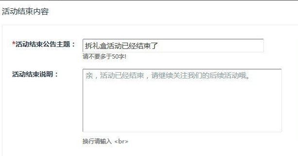 4、然后大家就可以開始填寫里面的禮盒內(nèi)容,填寫活動結(jié)束內(nèi)容,包括公告主題,封面圖片等。