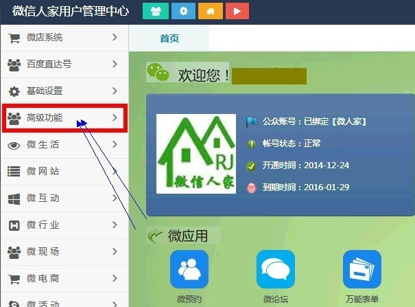 6、完成了上述步驟,在手機上用微信給你的公眾號輸入"幫助",測試你的接口是否配置正常!有收到回復的話,就說明您已經綁定成功了。點擊左側→ 我的帳號→ 功能管理,開始你的微信生涯吧!