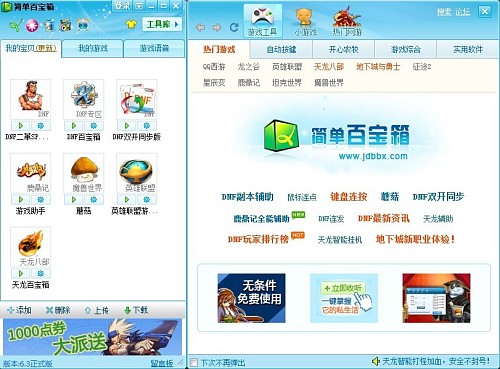 簡單百寶箱是目前用戶量最多的網游工具管家類產品。支持工具下載、工具管理等功能,并且自主研發(fā)了20多個實用小工具,功能包括鍵盤鼠標連點、小鬧鐘、定時關機、系統(tǒng)垃圾清理、游戲加血助手、答題器、連發(fā)工具、魔獸世界插件、多開輔助工具、模擬器和加點器等。