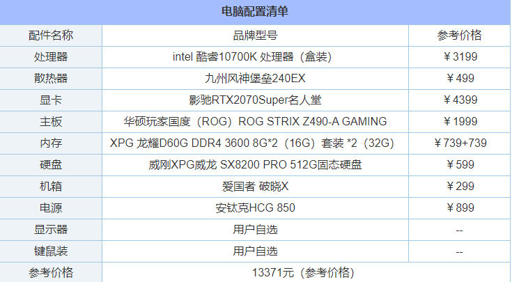 本次電腦配置清單如下,如果是您想要搭配一款差不多的配置,個人建議內(nèi)存換2根16G,因為小編為了插滿,而電源選擇額定600W-650W足夠了。