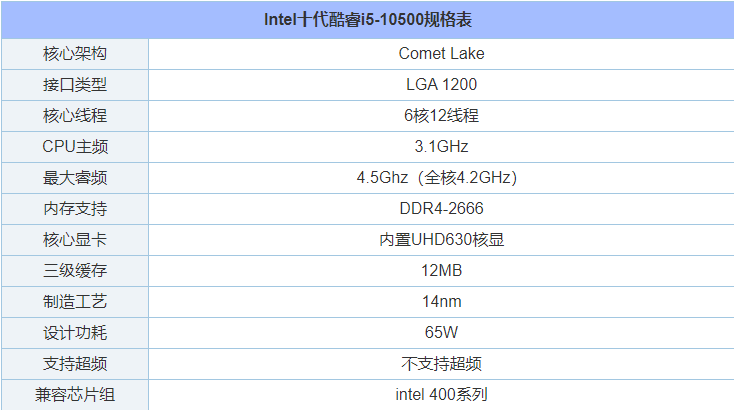 intel十代酷睿處理器,定位千元主流級的CPU首先帶來了i5-10400/F,帶F后綴的一款是無內(nèi)置核顯,其它參考一致,由于性價比突出,迎來了良好的口碑。而隨之,intel又放出了i5-10500這顆CPU,相當(dāng)于i5-10400的升級版,只是在頻率多了0.2GHz,其它參數(shù)保持一致,盒裝定價相比i5-10400貴了一百元。那么i5 10500配什么主板?支持內(nèi)存頻率多少?下面分享一下intel酷睿i5 10500與主板搭配知識,感興趣的朋友快來看看吧!