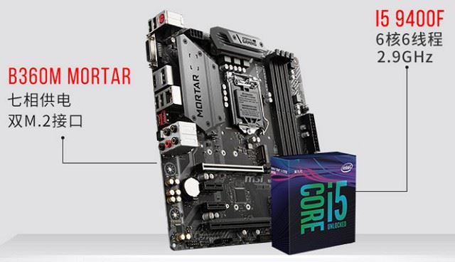 處理器:Intel九代i5 9400F盒裝+微星B360M MORTAR主板套裝 ¥1769