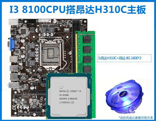 為了最大化提升硬件性價比,這套配置直接選用的是電商平臺的i3 8100 散片 + 昂達(dá)H310C-SD3 +昂達(dá)8G DDR3 1600*2套裝,也就是CPU、主板、內(nèi)存打包購買,售價僅1329元,三大件打包價算是很實惠了,同時還附贈大水牛Q8散熱器,用戶單獨去買散熱器。
