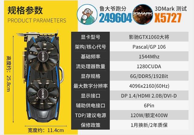 顯卡: 影馳 GTX1060 6G 大將顯卡 ¥1799
