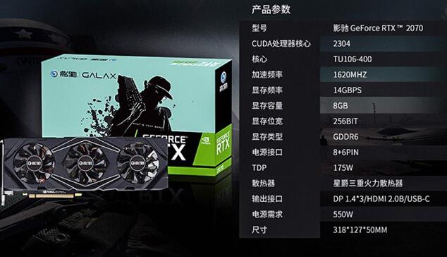 顯卡:影馳GeForce RTX 2070 8GB ¥3999