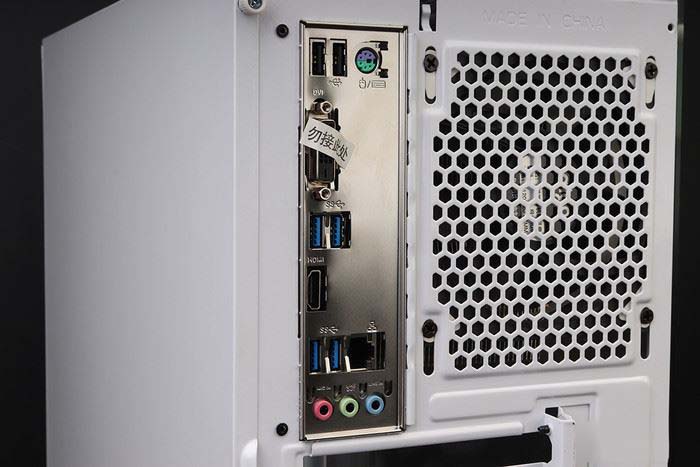 背后的I/O接口也是正常水平,對于游戲玩家來說已經(jīng)足夠了,2×USB 2.0、4×USB 3.1、1×HDMI、1×DVI以及一些常規(guī)接口。并且DVI接口處貼上了封條,防止玩家們將顯示器連接在主板上,這一點還是很貼心的。