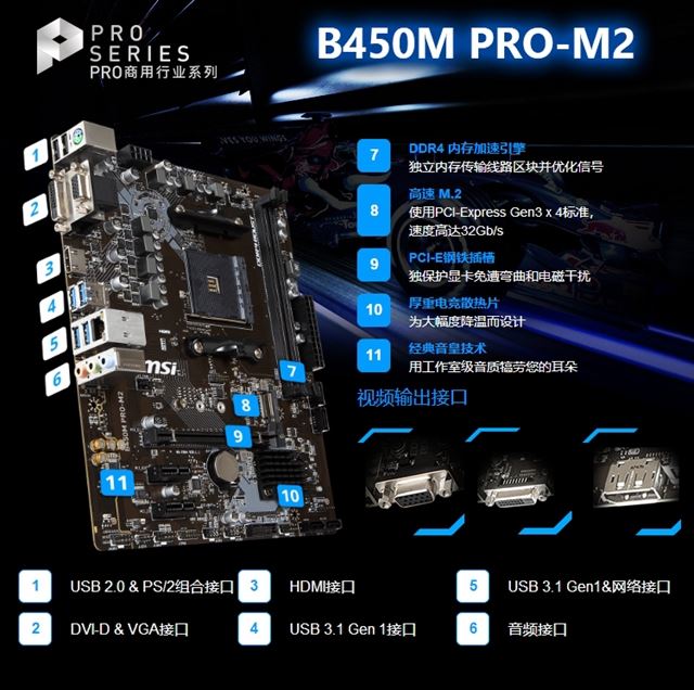 微星B450M PRO-M2基于最新的B450芯片組,擁有6相扎實的數(shù)字供電設(shè)計,可完美支持銳龍AMD Ryzen一二代處理器。雖然是M-ATX小板型設(shè)計,但是它仍然保持了較好的擴(kuò)展功能,包括四根DDR4內(nèi)存插槽、一根PCIe 3.0 x16(x16)插槽、4個SATA 6.0 Gb/s接口,一個M.2插槽,I/O背板處還擁有2個USB2.0接口和4個USB3.1接口等等,實用性非常的不錯。