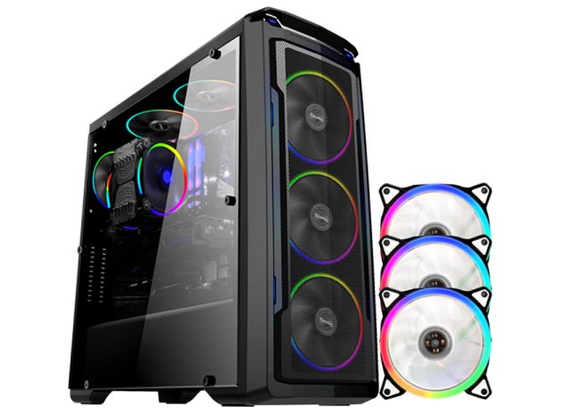 機箱推薦的是航嘉暗夜獵手2水冷全側黑色,并贈送3個風神日食彩色機箱散熱風扇,售價169元,價格不貴。