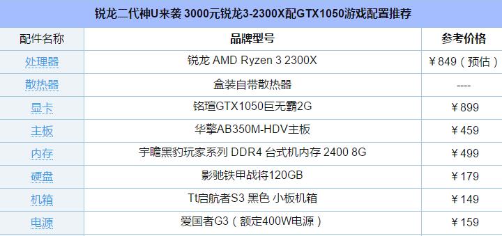 今天來看看小編搶先為大家?guī)砹艘惶卒J龍3-2300X配GTX1050游戲配置推薦,預(yù)算3000元左右,來看看這套新平臺(tái)是如何搭配的。