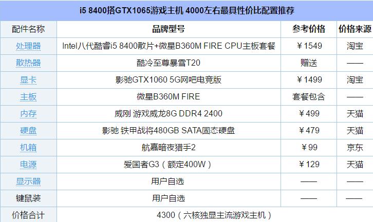 八代i5 8400六核+GTX1065吃雞顯卡+游戲內(nèi)存+480GB大容量SSD,主流游戲主機(jī)僅4000出頭,這應(yīng)該是Intel平臺(tái),同價(jià)位性價(jià)比最高的游戲主機(jī)了。相比AMD六核獨(dú)顯平臺(tái)差距也很小,喜歡Intel平臺(tái)裝機(jī)的朋友,不妨考慮下這套可以暢玩各類主流游戲大作的,超值配置方案吧。