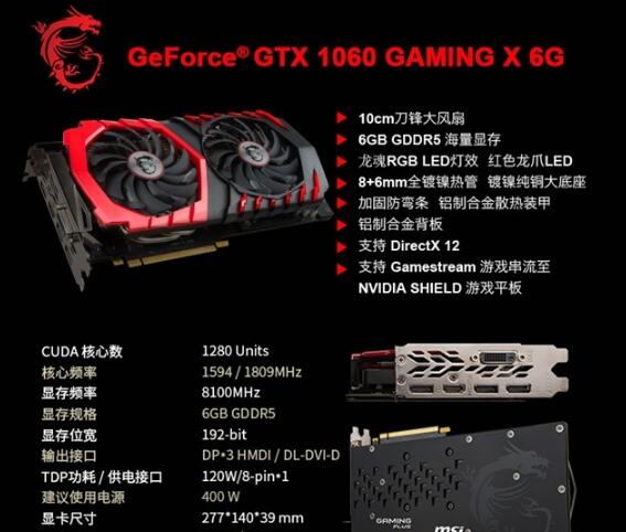 顯卡方面,微星GeForce GTX1060 GAMING 6G紅龍顯卡采用NVIDIA最新PASCAL架構(gòu)GP106核心打造,具備比公版GeForceGTX1060更高的頻率,從而能提供更強(qiáng)勁的游戲性能,遠(yuǎn)超公版的5+1相供電設(shè)計(jì)和外接8Pin供電能充分保障這款產(chǎn)品的穩(wěn)定性和耐用度。目前這款顯卡在電商平臺(tái)做活動(dòng),可以返現(xiàn)200元還是非常劃算的。