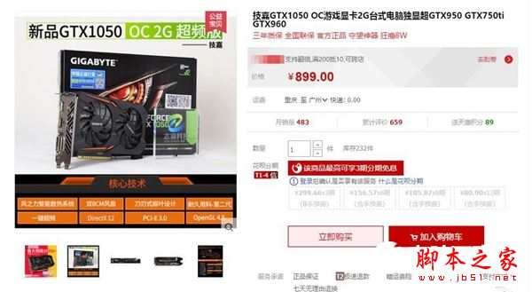 顯卡 | 技嘉GTX1050OC-2GD 雙風扇 | ¥798 |