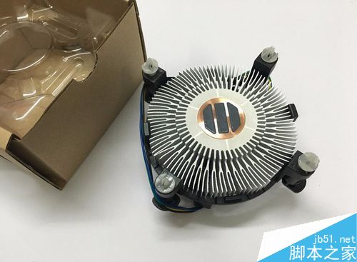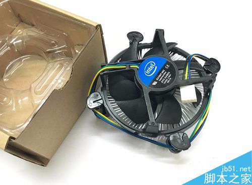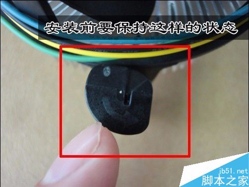 2.風扇四個腳有四個卡扣,旋轉至圖片一樣,然后對準主板的孔向下按,聽見咔的一聲就裝進去了,然后按照風扇上四個腳編注的旋轉方向旋轉就裝好風扇了。