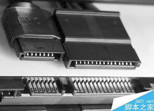 6、就這樣對準插進去就可以了,SATA數據線的另一端插在主板的SATA接口上面。就完成了,接下來電源連到主板,