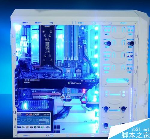 10、裝機就完成了,如果你機箱是側透的,可以裝條旋光燈,就好看多了,不是側透的就沒有畢要了,可以走背線的機箱,線就放后面,這樣看起來美觀,裝完后理下線,該綁起來的用扎帶綁好,看起來也舒服。