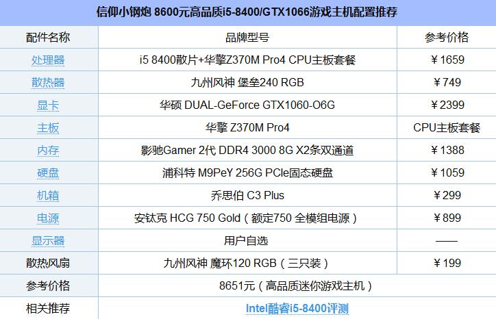廢話不多說,直接來看看今天的信仰小鋼炮主機配置單,如下表格所示。