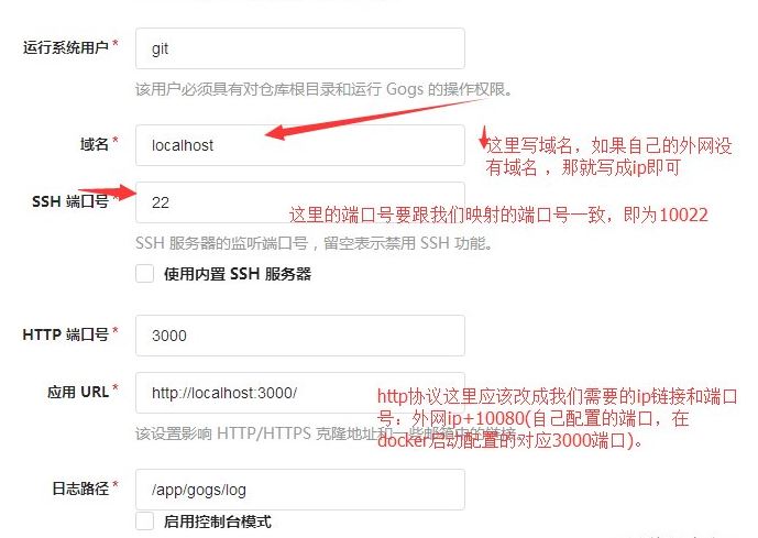 其中10022映射的是docker中的22端口 10080映射的是http的3000端口,這個在我們啟動的時候會使用到該配置。(注:我這里運行后一直停留在某個點沒有完成,需重啟服務(wù)器,重復(fù)執(zhí)行步驟3)