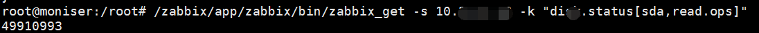 重啟客戶端的zabbix_agentd,然后在zabbix服務端對服務發現和寫扇區次數進行測試。代碼如下,有顯示內容說明已經部署成功。