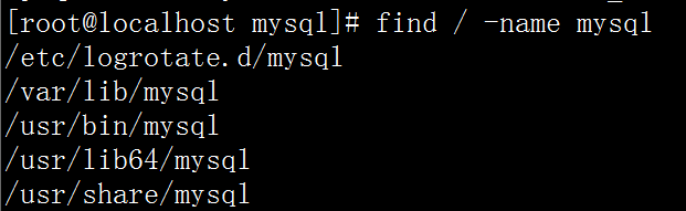 3.卸載完成后使用find命令來(lái)查找系統(tǒng)中存在的mysql文件夾。