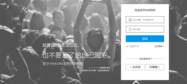 在瀏覽器中輸入:服務器的IP地址/thinksns 例如:192.168.1.104/thinksns