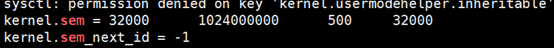 kernel.sem =32000102400000050032000kernel.shmall =18446744073692774399kernel.shmmax =18446744073692774399kernel.shmmni =4096fs.file-max =96898fs.aio-max-nr =65536net.ipv4.ip_local_port_range= 3276860999net.core.rmem_max= 212992net.core.rmem_default= 212992net.core.wmem_default= 212992net.core.wmem_max= 212992
