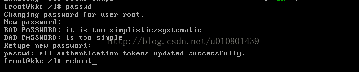 5.最關鍵的一步來了,就是需要咱們修改密碼了,#passwd命令,讓后輸入咱們需要設定的密碼,并且,利用# reboot 命令,使linux系統重新啟動,命令生效。