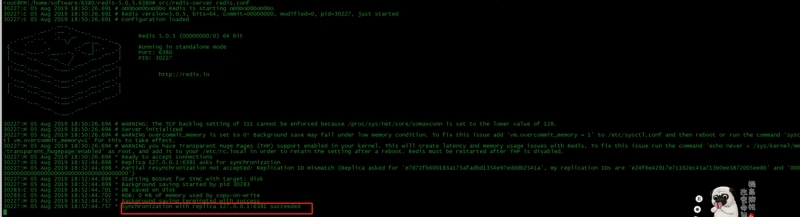 31651:M 06 Aug 2019 11:08:40.802 * Starting BGSAVE for SYNC with target: disk31651:M 06 Aug 2019 11:08:40.802 * Background saving started by pid 3167631676:C 06 Aug 2019 11:08:40.805 * DB saved on disk31676:C 06 Aug 2019 11:08:40.806 * RDB: 0 MB of memory used by copy-on-write31651:M 06 Aug 2019 11:08:40.886 * Background saving terminated with success31651:M 06 Aug 2019 11:08:40.886 * Synchronization with replica 127.0.0.1:6381 succeeded