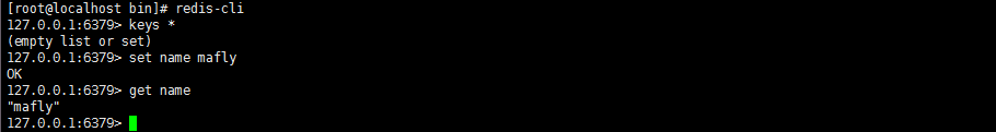 redis-cli #連接 Redis ,默認是本機的。keys * #查看現在所有 keyset name mafly #設置一個key為`name`,value為`mafly`的緩存對象。get name #獲取key為`name`的緩存