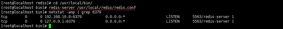 cd /usr/local/bin/redis-server /usr/local/redis/redis.confnetstat -anp | grep 6379